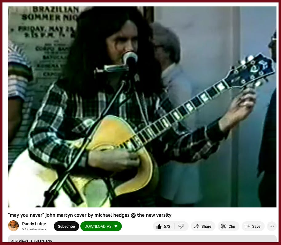 “"may you never" john martyn cover by michael hedges @ the new varsity”
