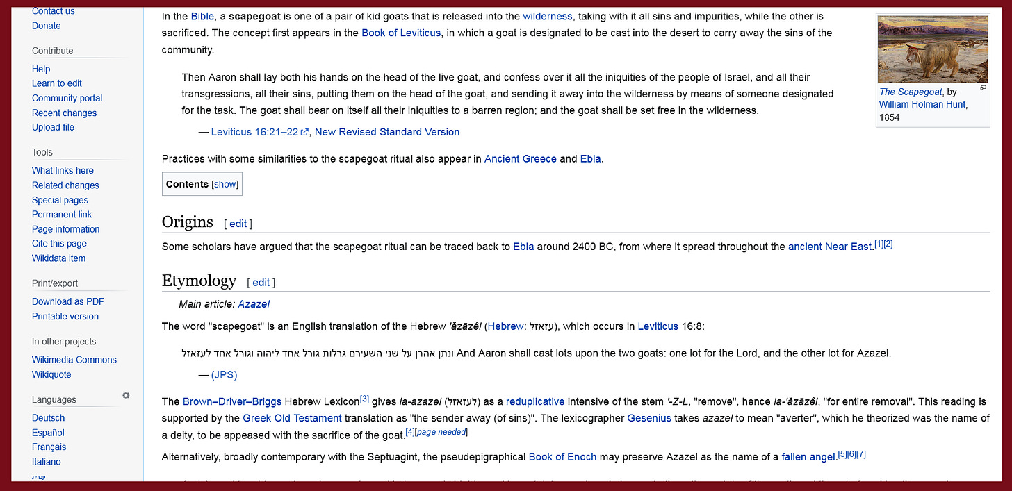 I was considering Scapegoating in terms of our Distance From God, that we Scapegoat versions of ourselves – we heap-on the knowledge of our sins and also push away the responsibly of them only sub sub-part of ourselves and then turn-away and ignore his suffering – because we pretend we do not know why he is suffering and do not know him.