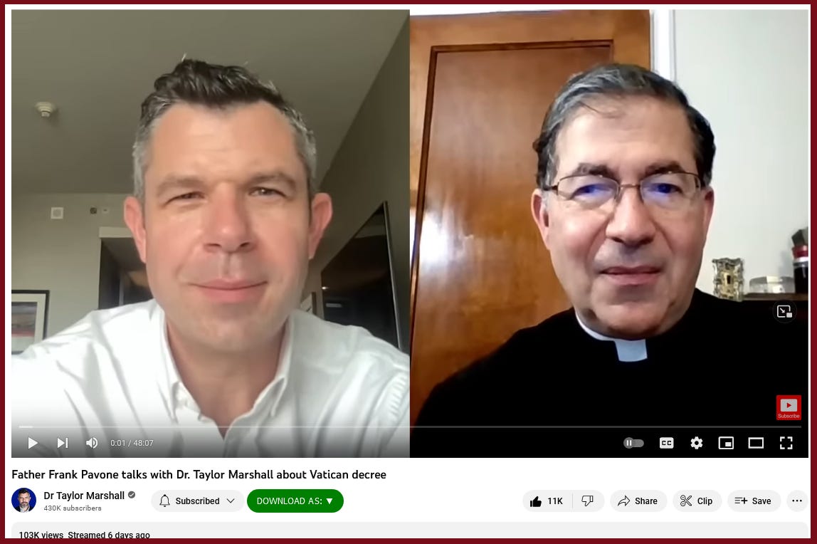 “Father Frank Pavone talks with Dr. Taylor Marshall about Vatican decree”