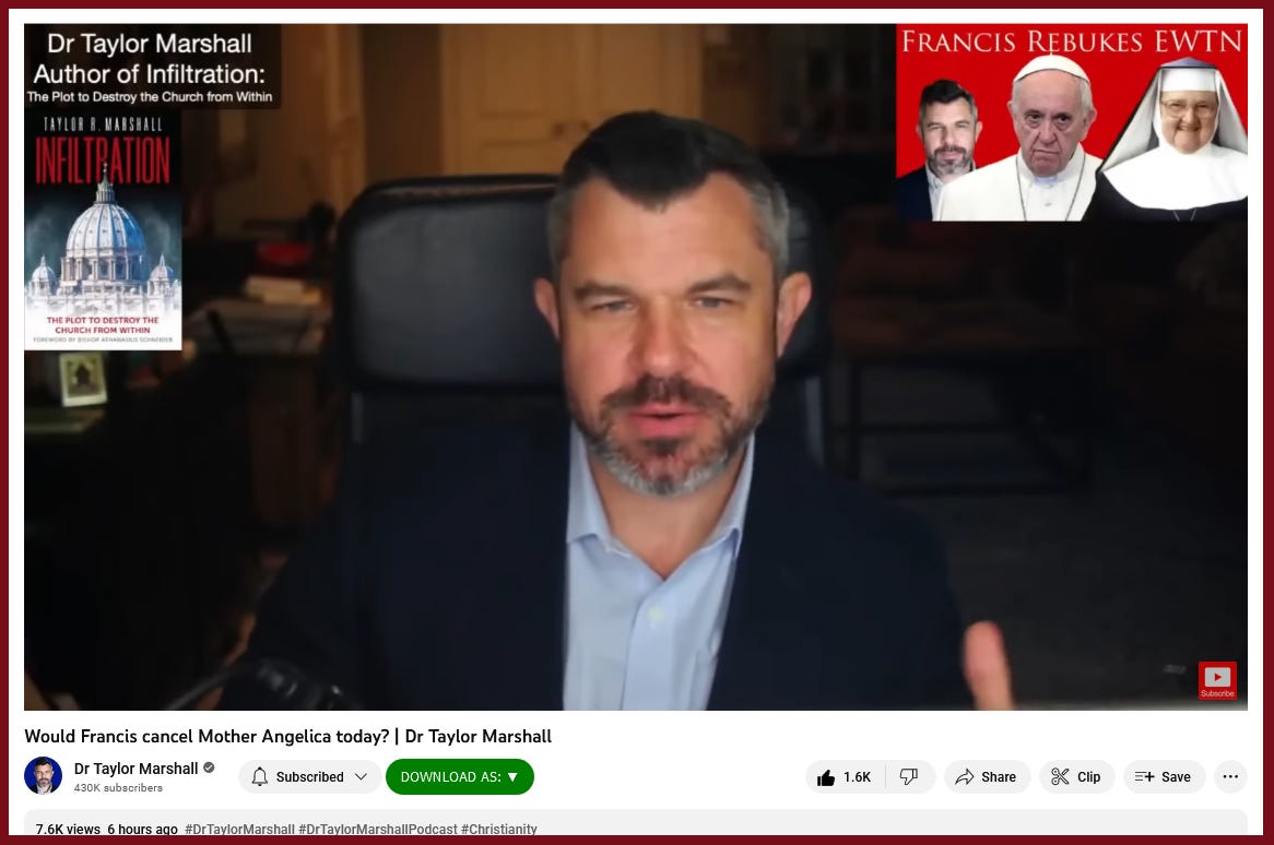 “Would Francis cancel Mother Angelica today? | Dr Taylor Marshall”