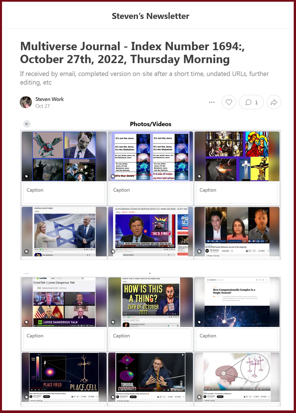 https://www.facebook.com/Steven.Work/posts/pfbid02Q3fFxMFCcZhqFcxgmjEbjwSfW1rfA1ustry39bpERNjjhVaWqzNups7HFz9FqrVNl [disOrdering version of URL]