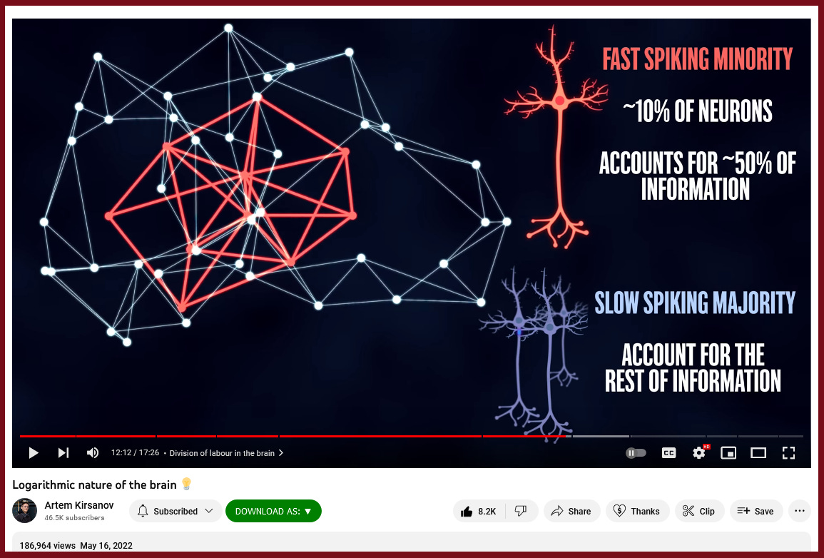 The video below discusses the Logarithmic distribution of Brain Neuron firings.