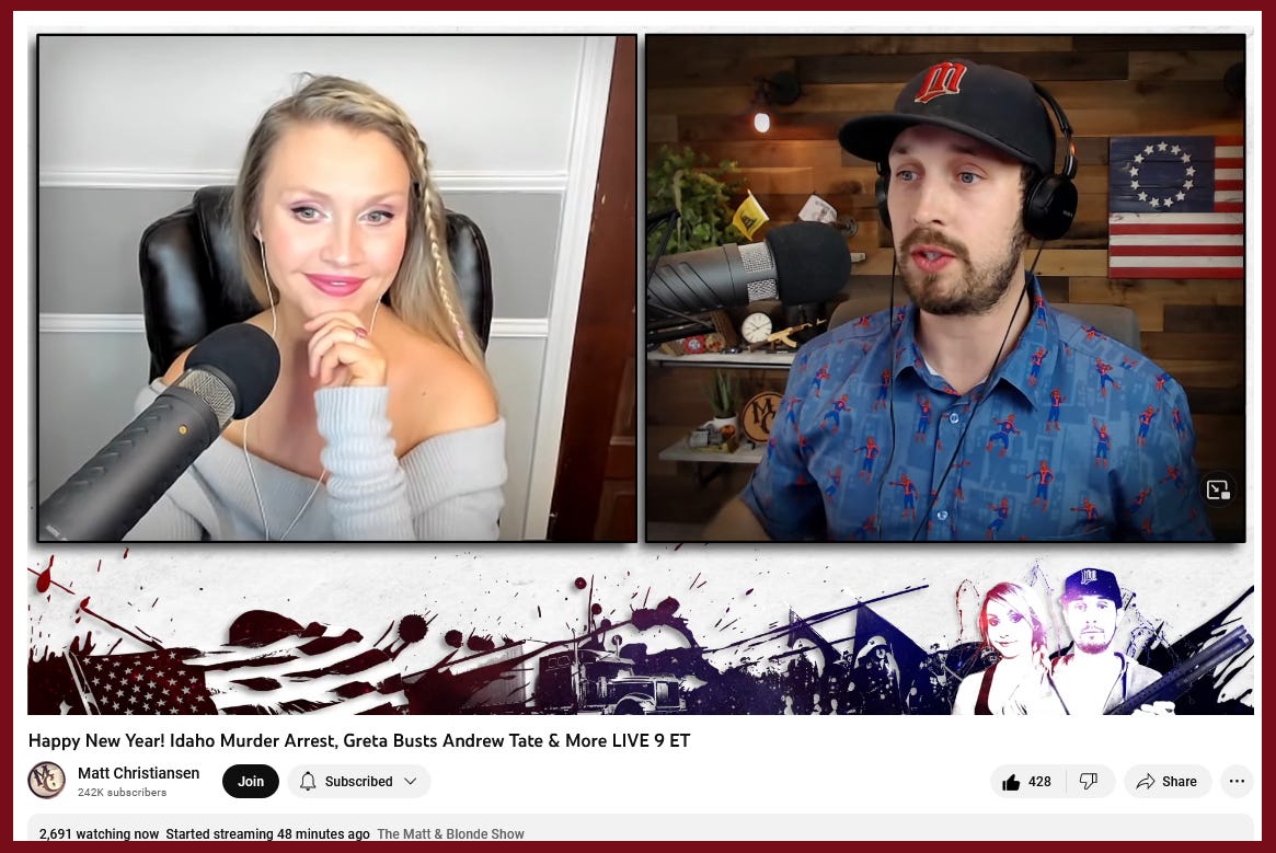 “Happy New Year! Idaho Murder Arrest, Greta Busts Andrew Tate & More LIVE 9 ET”