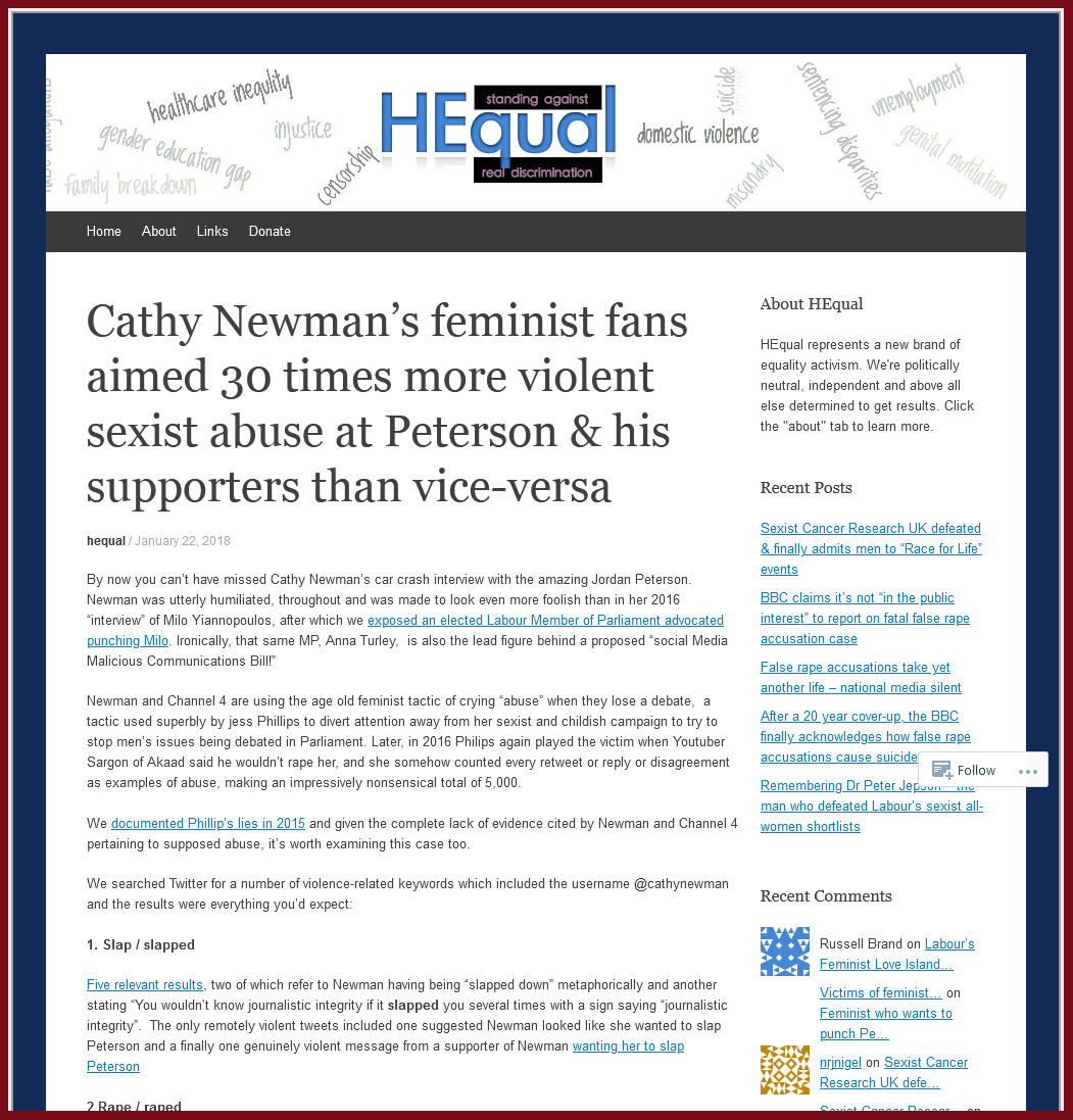 “Cathy Newman’s feminist fans aimed 30 times more violent sexist abuse at Peterson & his supporters than vice-versa”