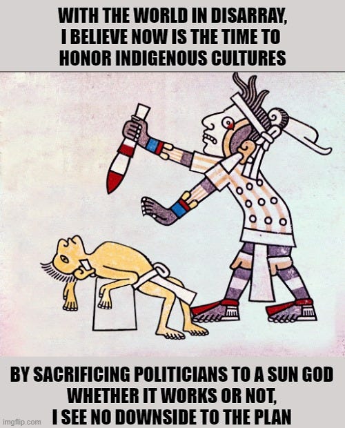 [Current popular Memes and Images - which reflect common thoughts of many - may be found on the SubStack version – Facebook Witches will/have punished my sharing of such.]