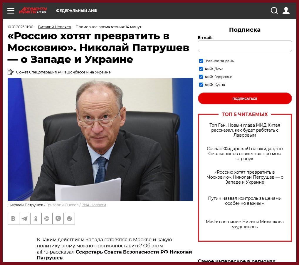“Россию хотят превратить в Московию». Николай Патрушев — о Западе и Украине”