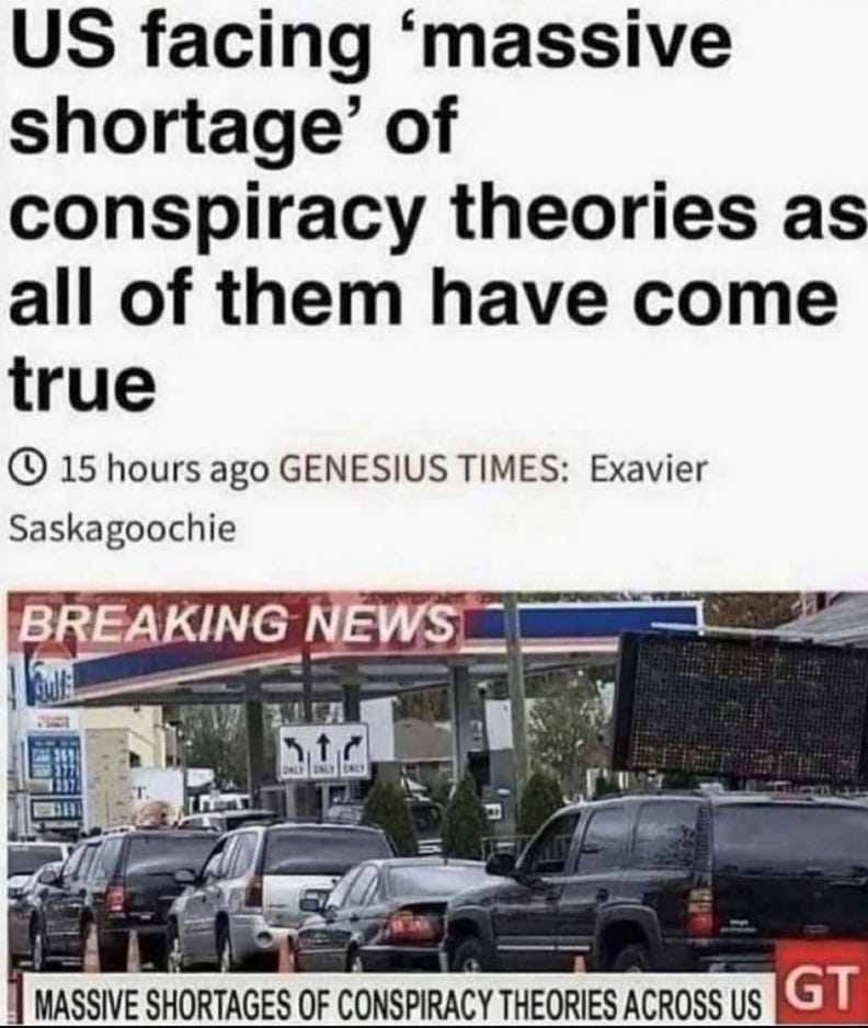 [Current popular Memes and Images - which reflect common thoughts of many - may be found on the SubStack version – Facebook Witches will/have punished my sharing of such.]