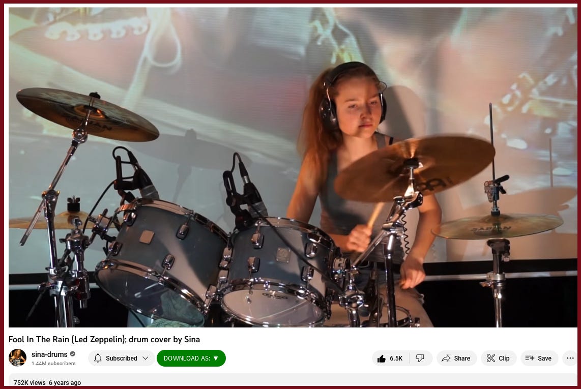 “Fool In The Rain (Led Zeppelin); drum cover by Sina