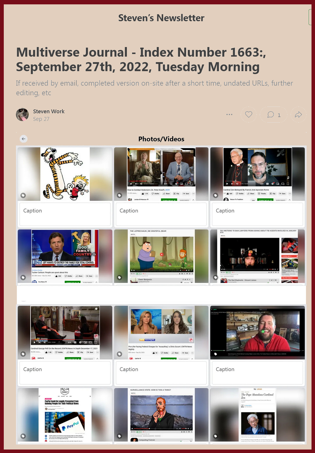 (See Cardinal Pell EWTN interview video in Post, 'Multiverse Journal - Index Number 1663:, September 27th, 2022, Tuesday Morning' (Click or see Postscript for URLs) starting at about 4:40 minute mark)
