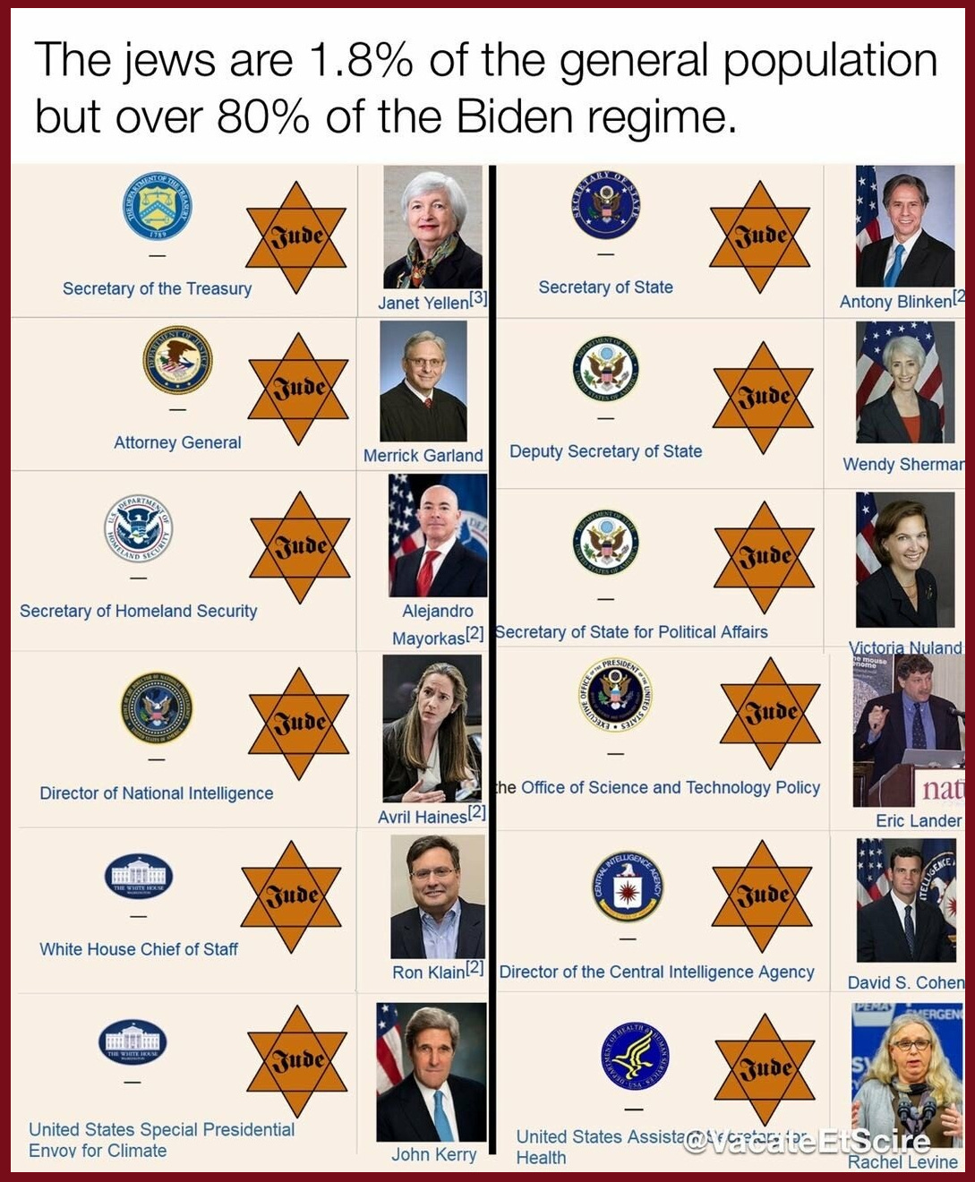 Another group of evil-Zionist and-or Golden Calf Satanists [unregistered – as far as we know] secrete Agents destroying our and Western Nations like those throughout our and their Executive Administrations and the Western Administrative States where you and I are 'souless goys' and non-family walking Organ-farms they will murder if needed, Death Camp fauder, enSlaved serfs they will drain of all resources and Laugh & Cackle as our children and us die on streets in own vomit and the feces from themselves and others if not sent to places to murder and destroy innocent families and such.