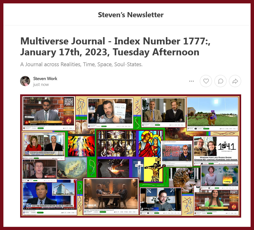 ('Multiverse Journal - Index Number 1772:, January 12th, 2023, Thursday Morning', click SubStack, Minds, or see PostScript for Referenced URLs)