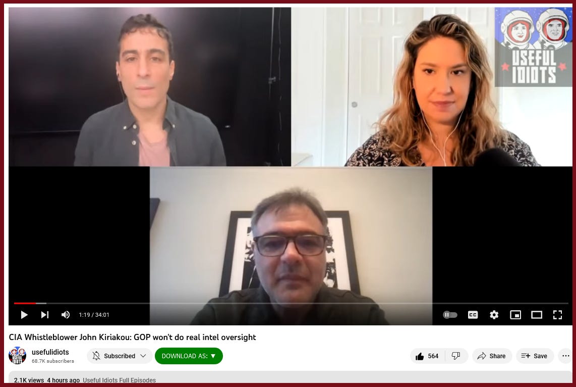 It is good to see John Kiriakou – he has been away from those sources I usually follow.