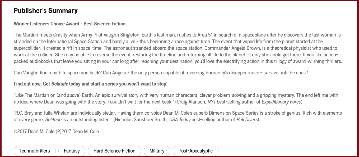 https://www.audible.com/pd/Solitude-Audiobook/B06XH67W6G
