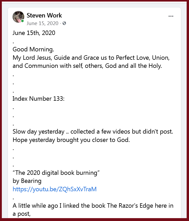 Facebook Multiverse Journal - Index Number 133, June 15th, 2020, Morning