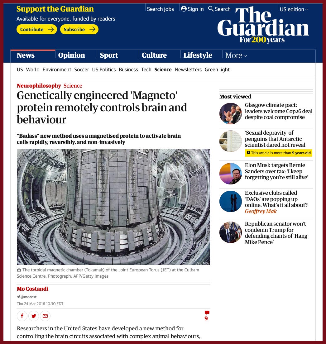“Genetically engineered 'Magneto' protein remotely controls brain and behaviour”