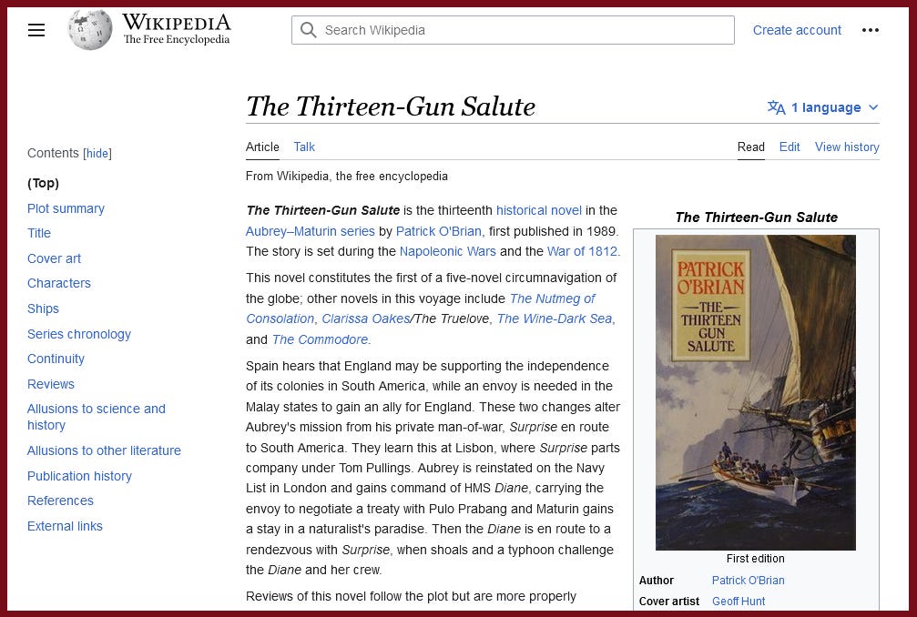 .. and am actively debating if this is the best or only one of the best two books in the 20 Aubrey–Maturin series of books. The beginning author's summation in beginning struck me as singularly excellent – so much so I am surprised it had not occurred to me in the last two (or so) readings over the years. Patrick O'Brian out-does himself in comfortable and full background description.