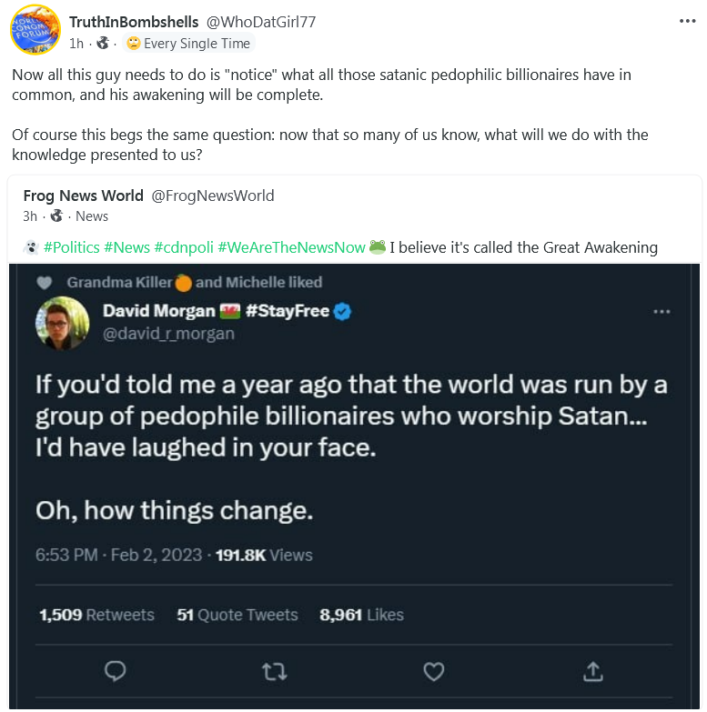The point being is that if your are doing very well today it can only be because you are working closely for and with Satan - and Her Witches. Are very likely a minion or actual family member of such Witches that it likely arguably best them and all older women in their family hanged from a tree could be considered for the Safety and well-being of us all and all our children, Nation, Western Society and World.