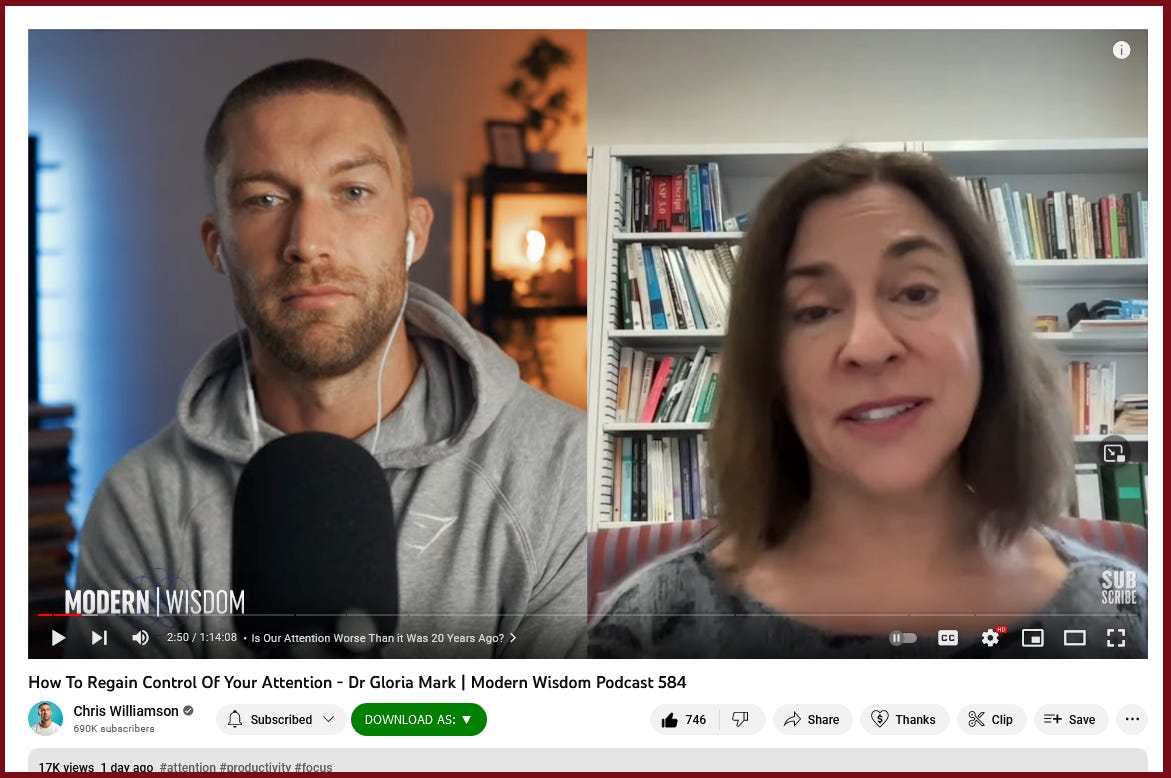 “How To Regain Control Of Your Attention - Dr Gloria Mark | Modern Wisdom Podcast 584”