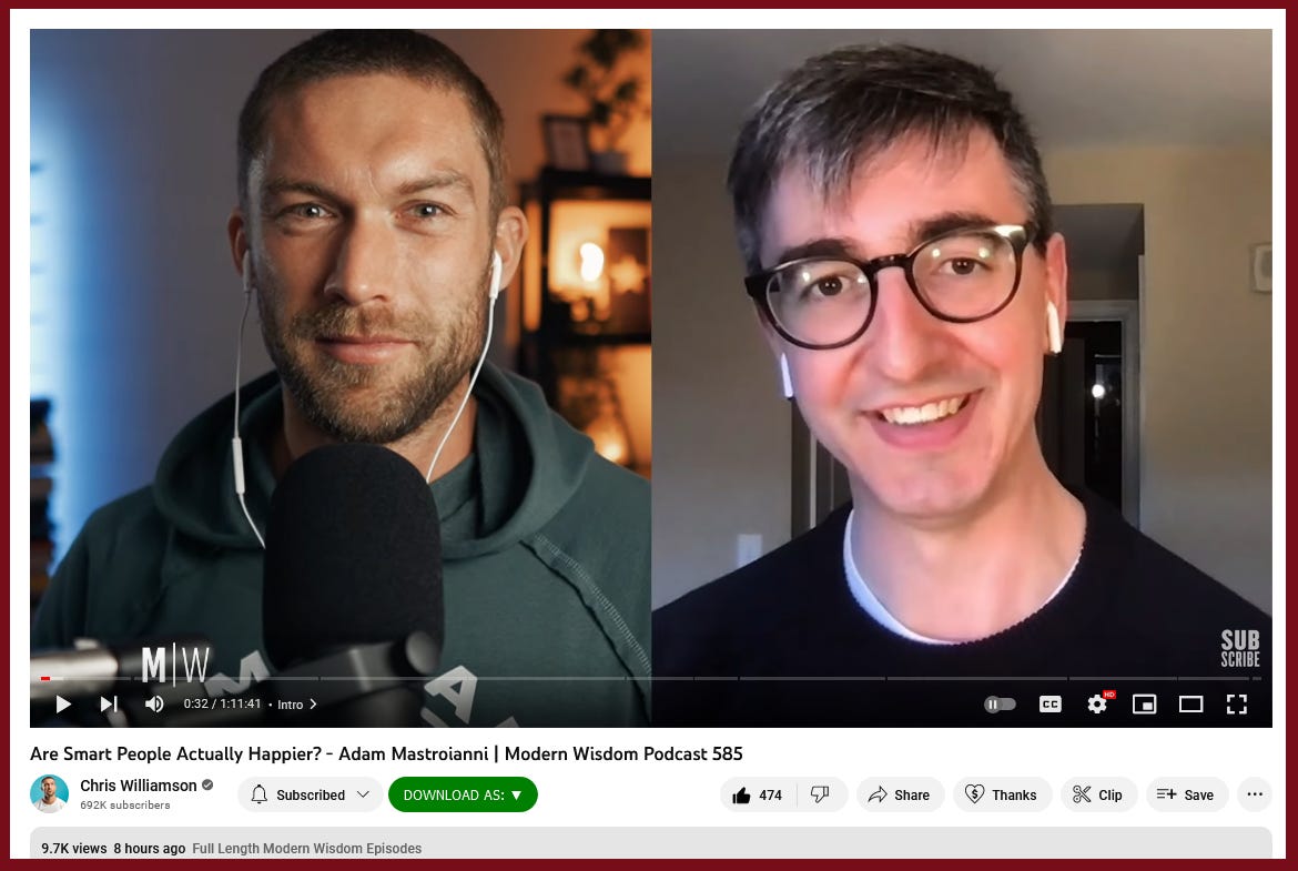 “Are Smart People Actually Happier? - Adam Mastroianni | Modern Wisdom Podcast 585”
