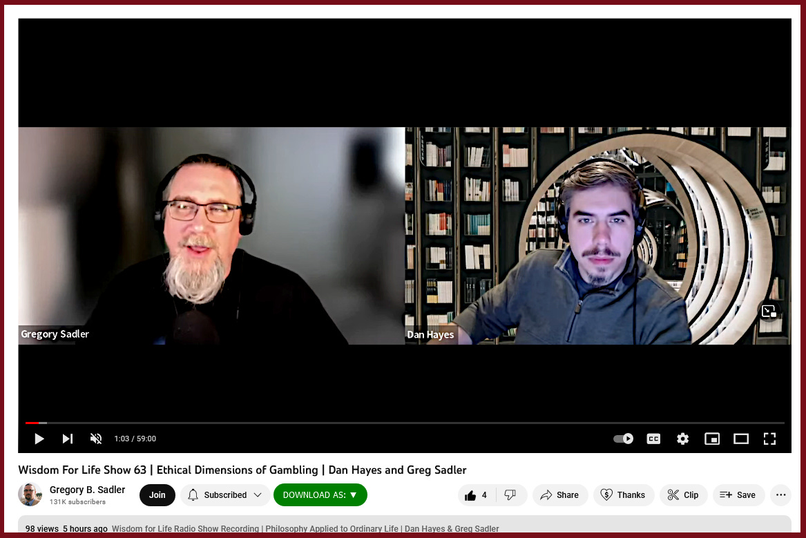 “Wisdom For Life Show 63 | Ethical Dimensions of Gambling | Dan Hayes and Greg Sadler”