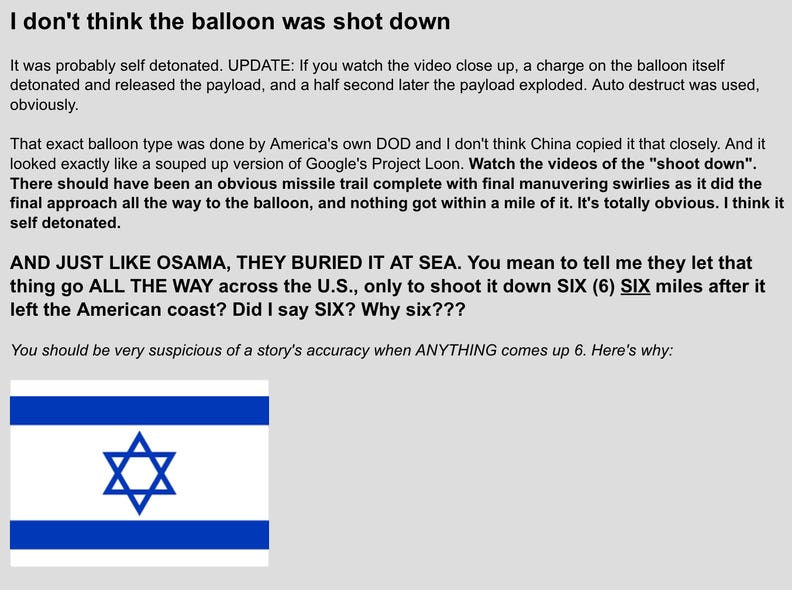 Pentagon explains not shooting down the balloon: https://bit.ly/3X6q0Ky