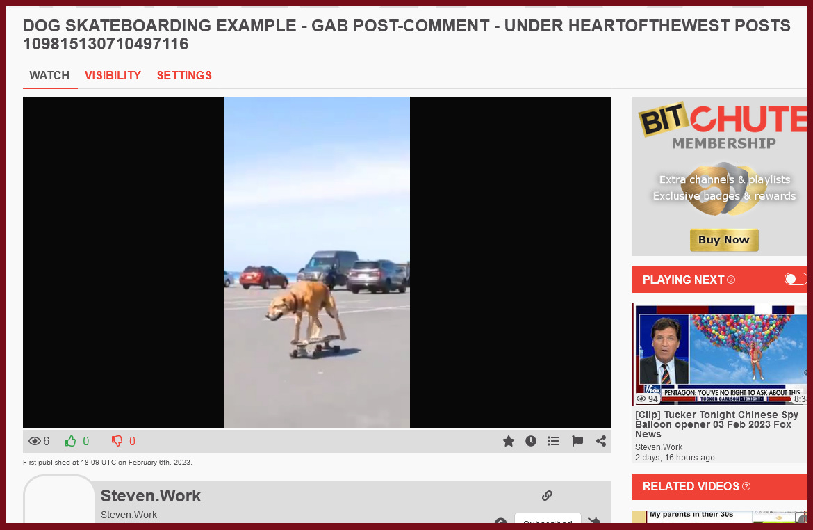 “Dog Skateboarding example - GAB post-comment - under HeartoftheWest posts 109815130710497116”