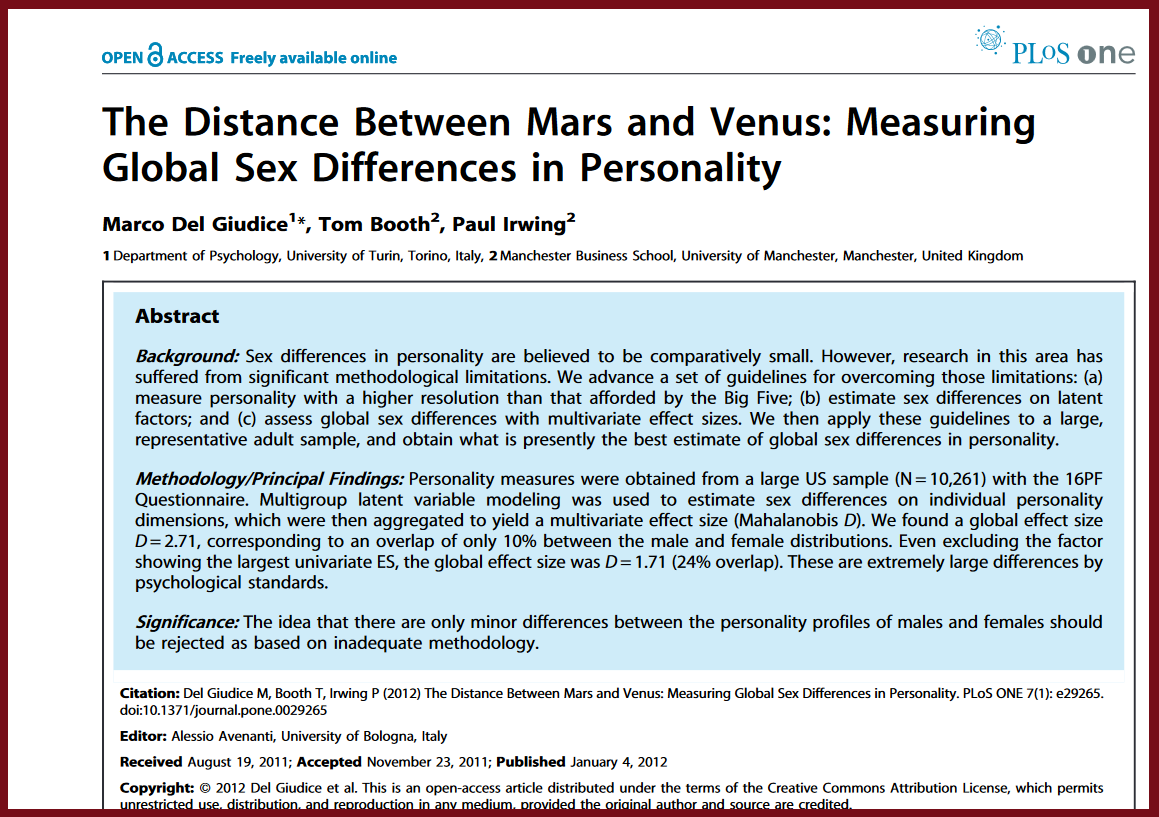 “The Distance Between Mars and Venus: Measuring Global Sex Differences in Personality”