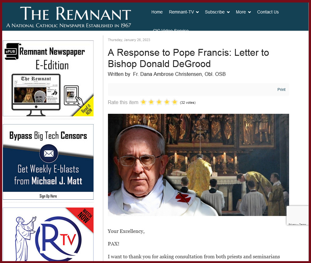 “A Response to Pope Francis: Letter to Bishop Donald DeGrood”