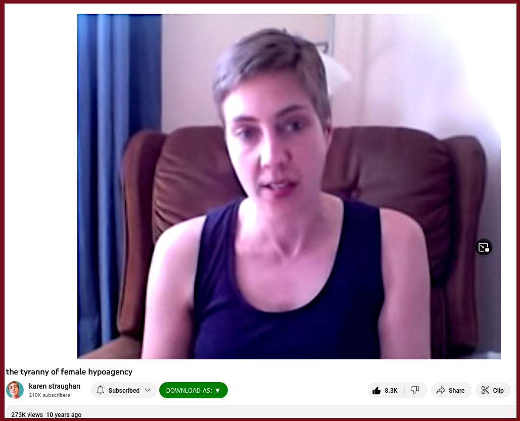 Here is Karen in a decade old video – discussing a Thinking-Ape (Stardusk) video at the time.