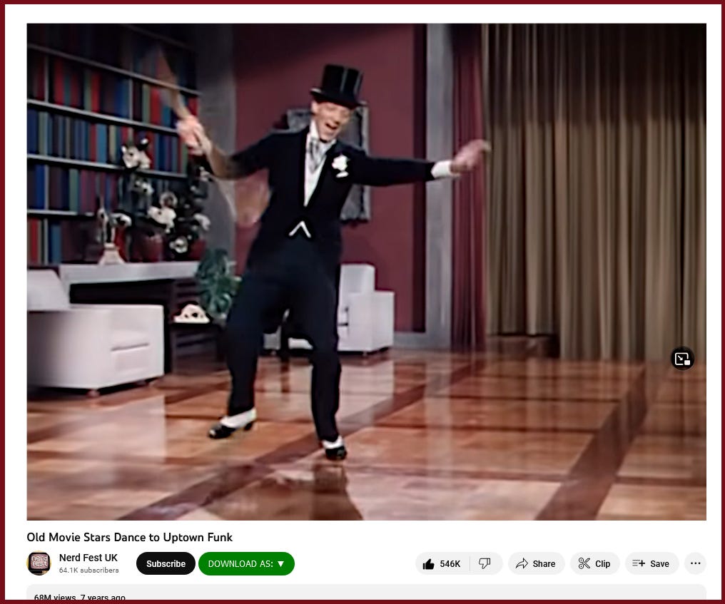 Here is a straight version of the song to famous dancing scenes from old Hollywood movies., ..