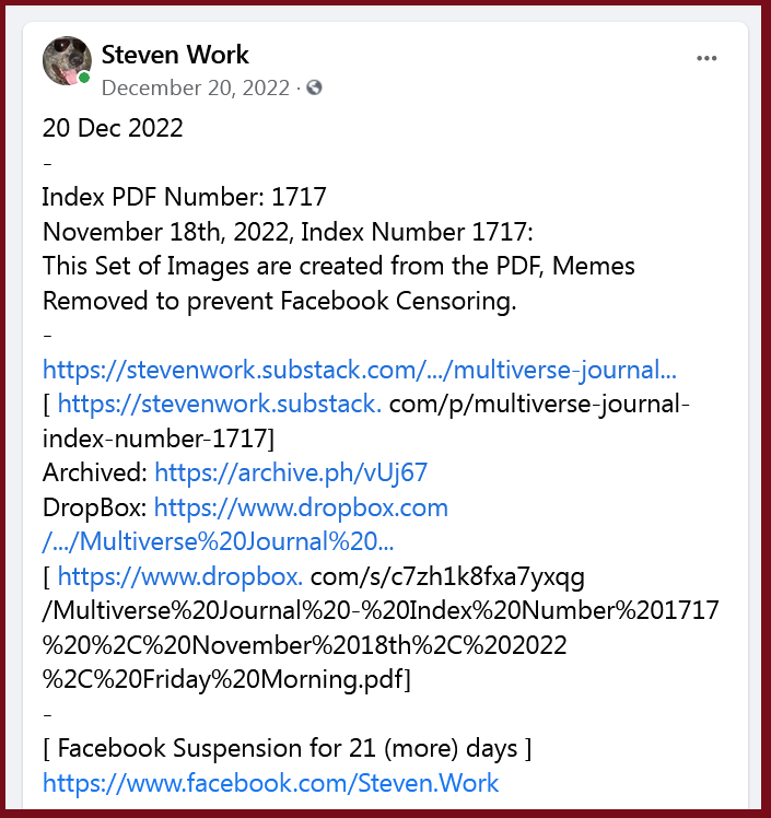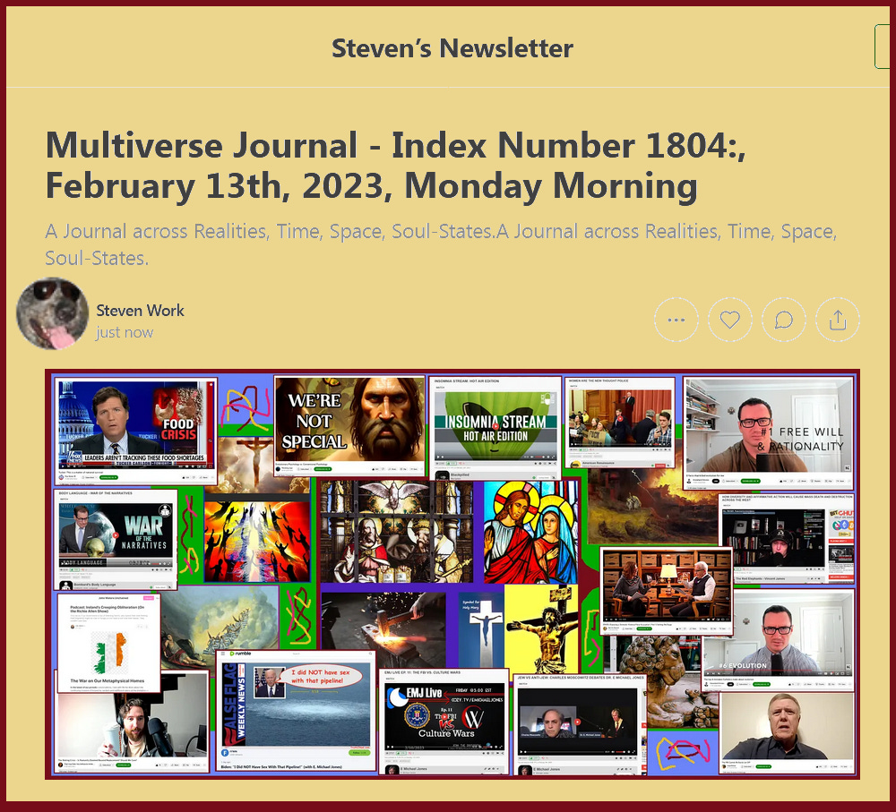 Multiverse Journal - Index Number 1717:, November 18th, 2022, Friday Morning, SubStack and Facebook version or see URLs in PostScript.