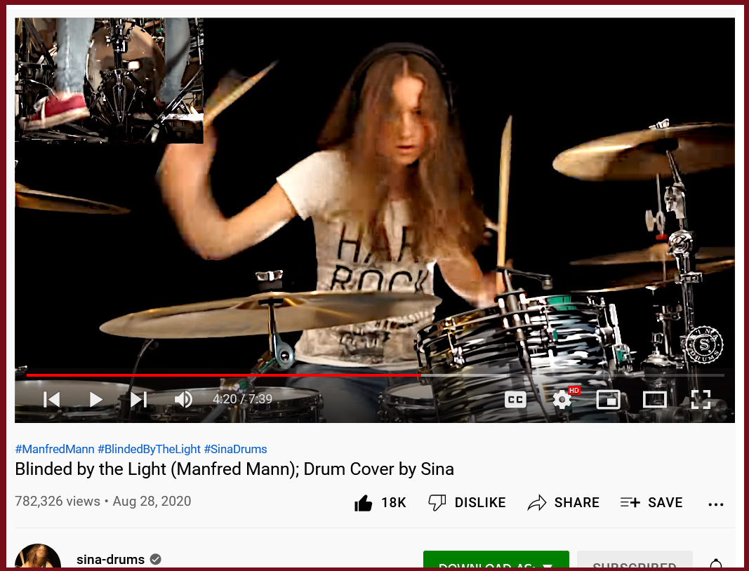 “Blinded by the Light (Manfred Mann); Drum Cover by Sina”