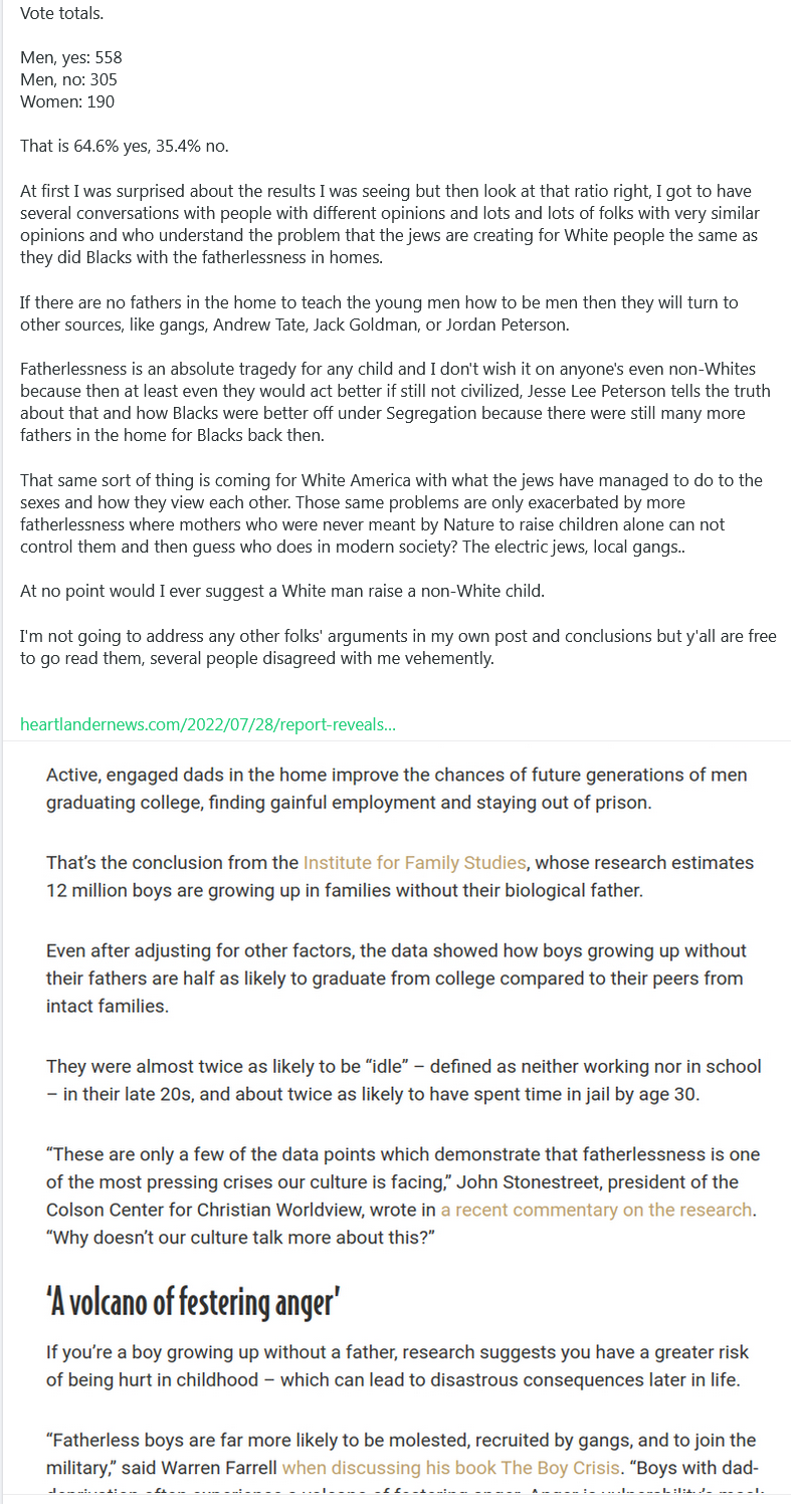 What kind of society do we have where [likely] Fatherless retards [Assuming something like female-pregnant privilege] think it is somehow reasonable to tell someone else to shut-up? Then when I responded s/he/It came back with something about 'why make it personal?' after saying that I should not have a voice in a conversation I was suggesting or that he was unwilling to not object instead of ignoring or going away. 'Why make it personal?'?