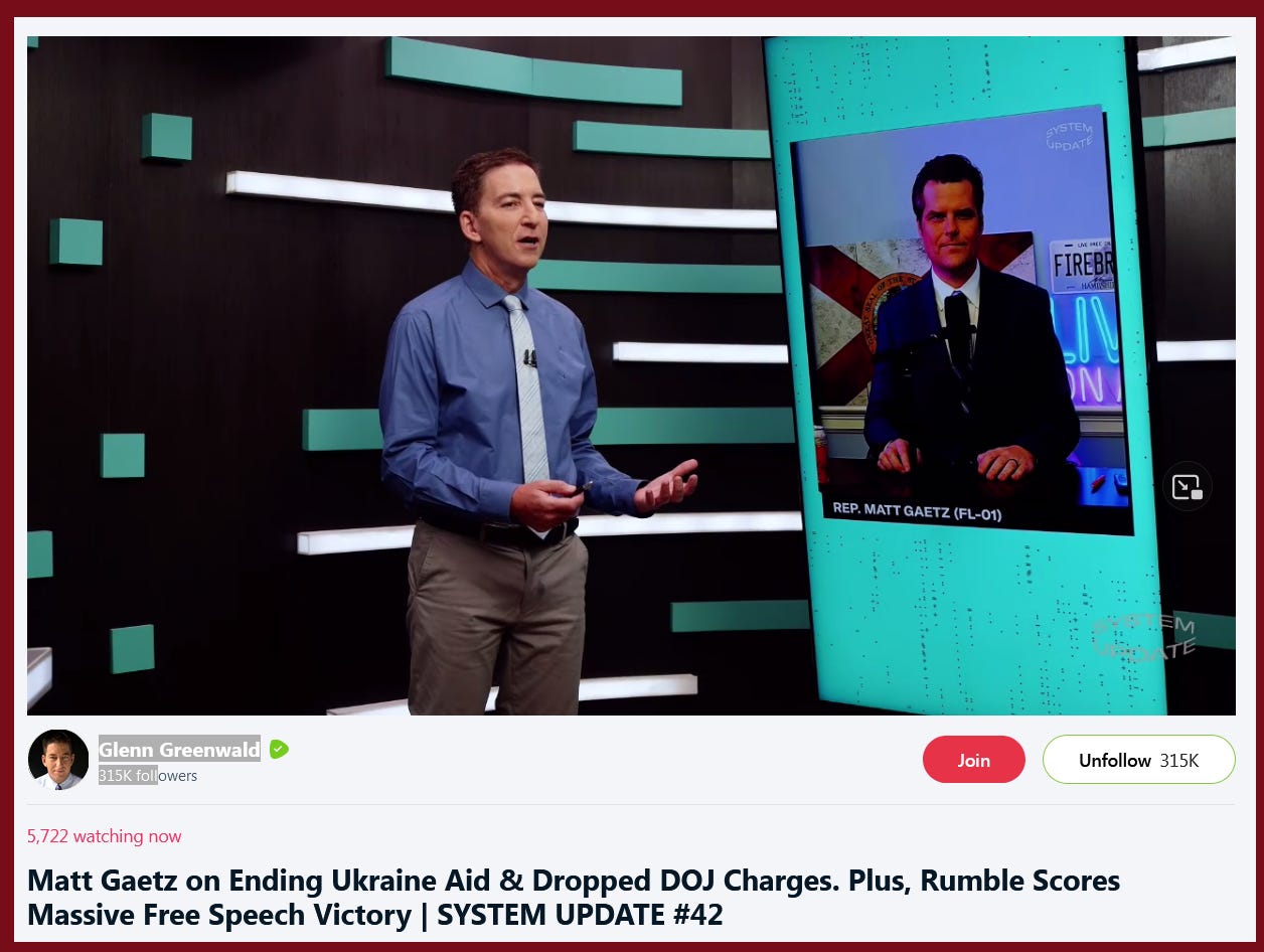 “Matt Gaetz on Ending Ukraine Aid & Dropped DOJ Charges. Plus, Rumble Scores Massive Free Speech Victory | SYSTEM UPDATE #42”