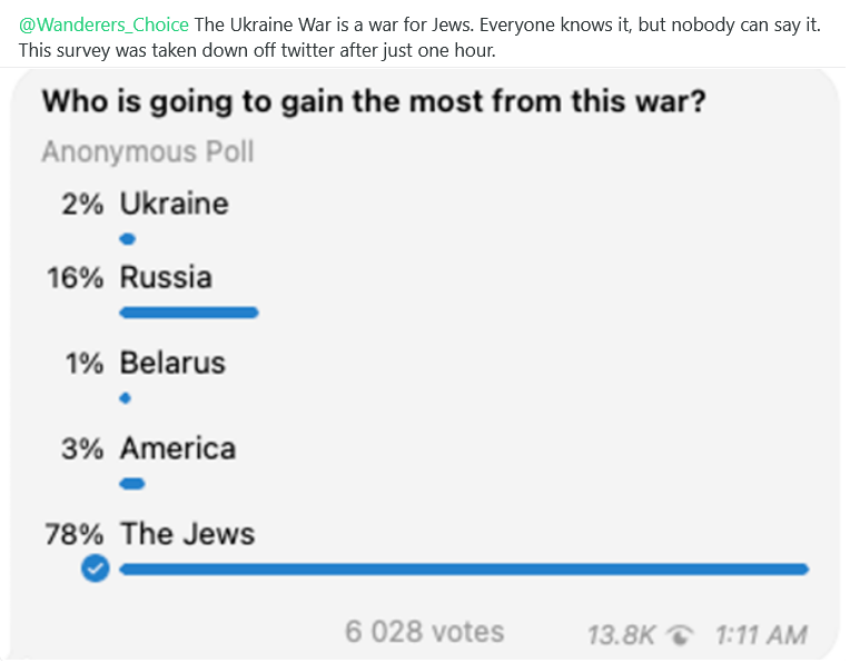 .. Ukraine-Russia needless war is a good example – murdering Christian [potential] fathers on both sides and families to Replace with non-Christians who are more easily sent Burning in Hell for there Vagina-god Satan.