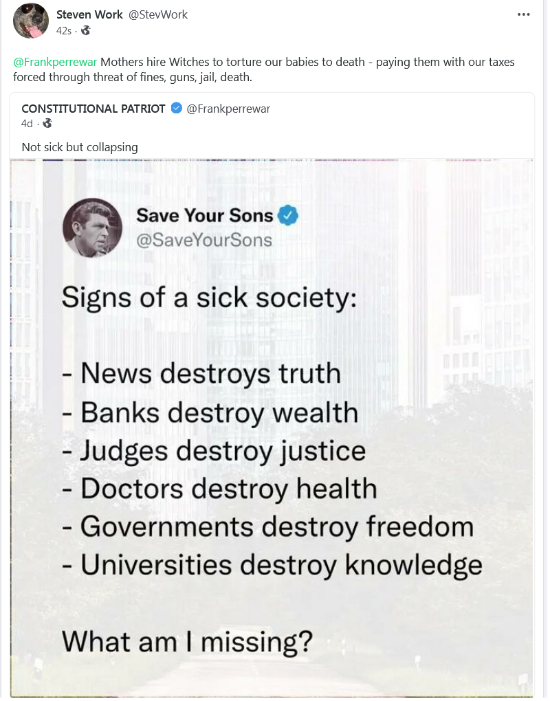 ( .. exclusive for SubStack because the Vagina-god Satanic Witch owners and directors of Facebook are Mind-Raping horrors that Hate us and want us suffering endlessly and Burning in Hell - They Lying, Censoring, manipulating and benefiting from our life-long and generational Suffering from lies and ignorance they Profit from. Mind-controlling slimy lying Hate-filled Female-Evil vile horrors that are a Curse on Life, Love, Joy, Peace, Liberty, Rationality, .. and our souls. — May these Profit us by helping see and consider some of what the Satanic minions of the Witch-Matriarchal ruling families want to hide from us.)
