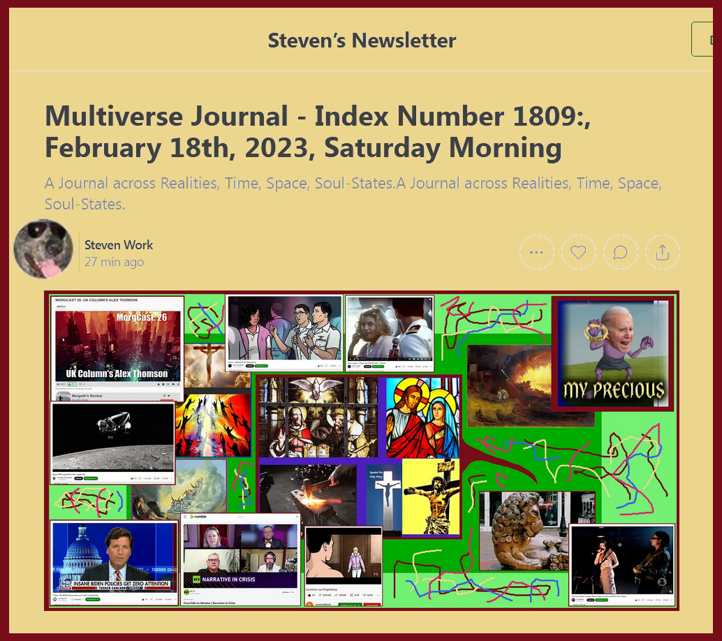 In this morning's prayers and meditation I spent some Focus on Yesterday's Post (https://stevenwork.substack.com/p/multiverse-journal-index-number-1809, see PS for other URLs )and there is a lot more there the I realized as I wrote it and commented it later .. if you had not seen it yet -please do.