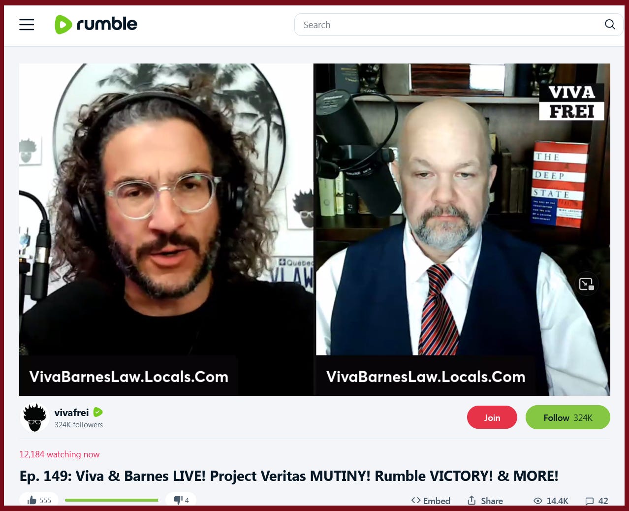 “Ep. 149: Viva & Barnes LIVE! Project Veritas MUTINY! Rumble VICTORY! & MORE!”