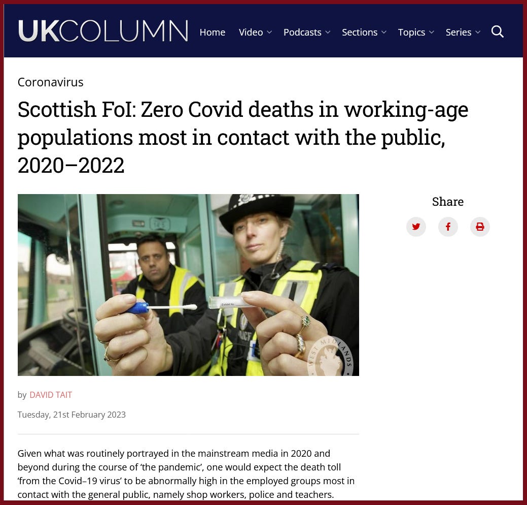 “Scottish FoI: Zero Covid deaths in working-age populations most in contact with the public, 2020–2022”