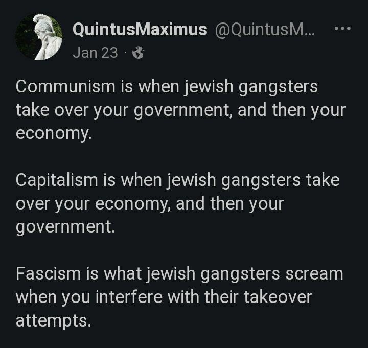 ( .. exclusive for SubStack because the Vagina-god Satanic Witch owners and directors of Facebook are Mind-Raping horrors that Hate us and want us suffering endlessly and Burning in Hell - They Lying, Censoring, manipulating and benefiting from our life-long and generational Suffering from lies and ignorance they Profit from. Mind-controlling slimy lying Hate-filled Female-Evil vile horrors that are a Curse on Life, Love, Joy, Peace, Liberty, Rationality, .. and our souls. — May these Profit us by helping see and consider some of what the Satanic minions of the Witch-Matriarchal ruling families want to hide from us.)