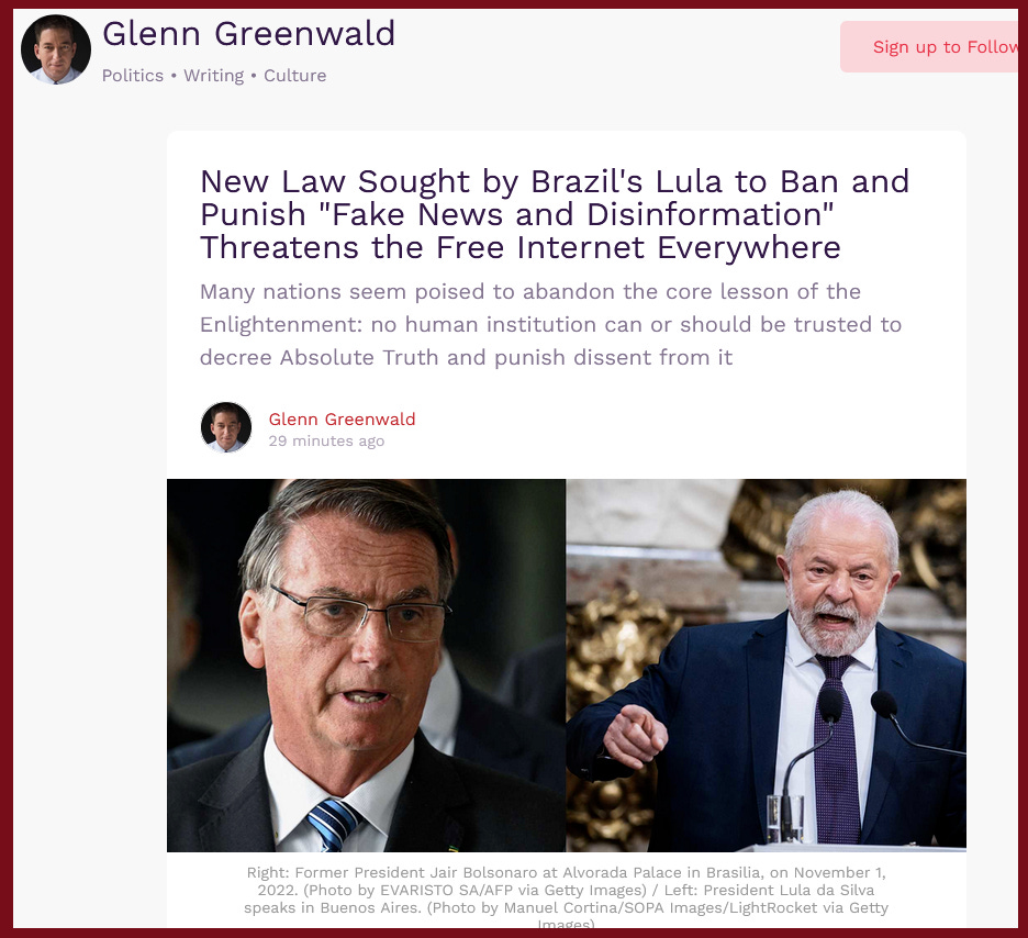 “New Law Sought by Brazil's Lula to Ban and Punish "Fake News and Disinformation" Threatens the Free Internet Everywhere”