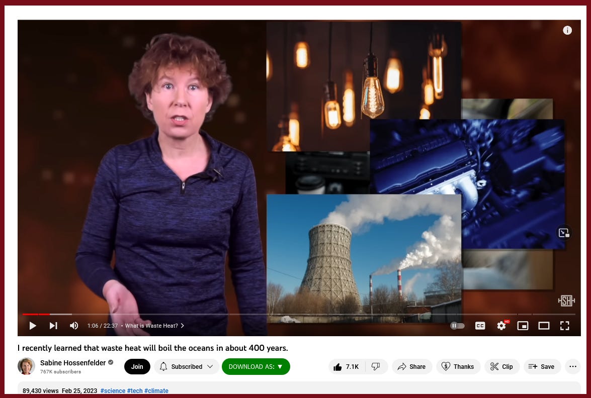 “I recently learned that waste heat will boil the oceans in about 400 years.”