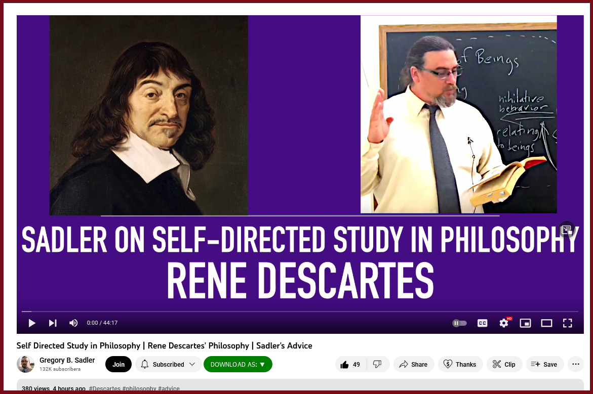 “Self Directed Study in Philosophy | Rene Descartes' Philosophy | Sadler's Advice”