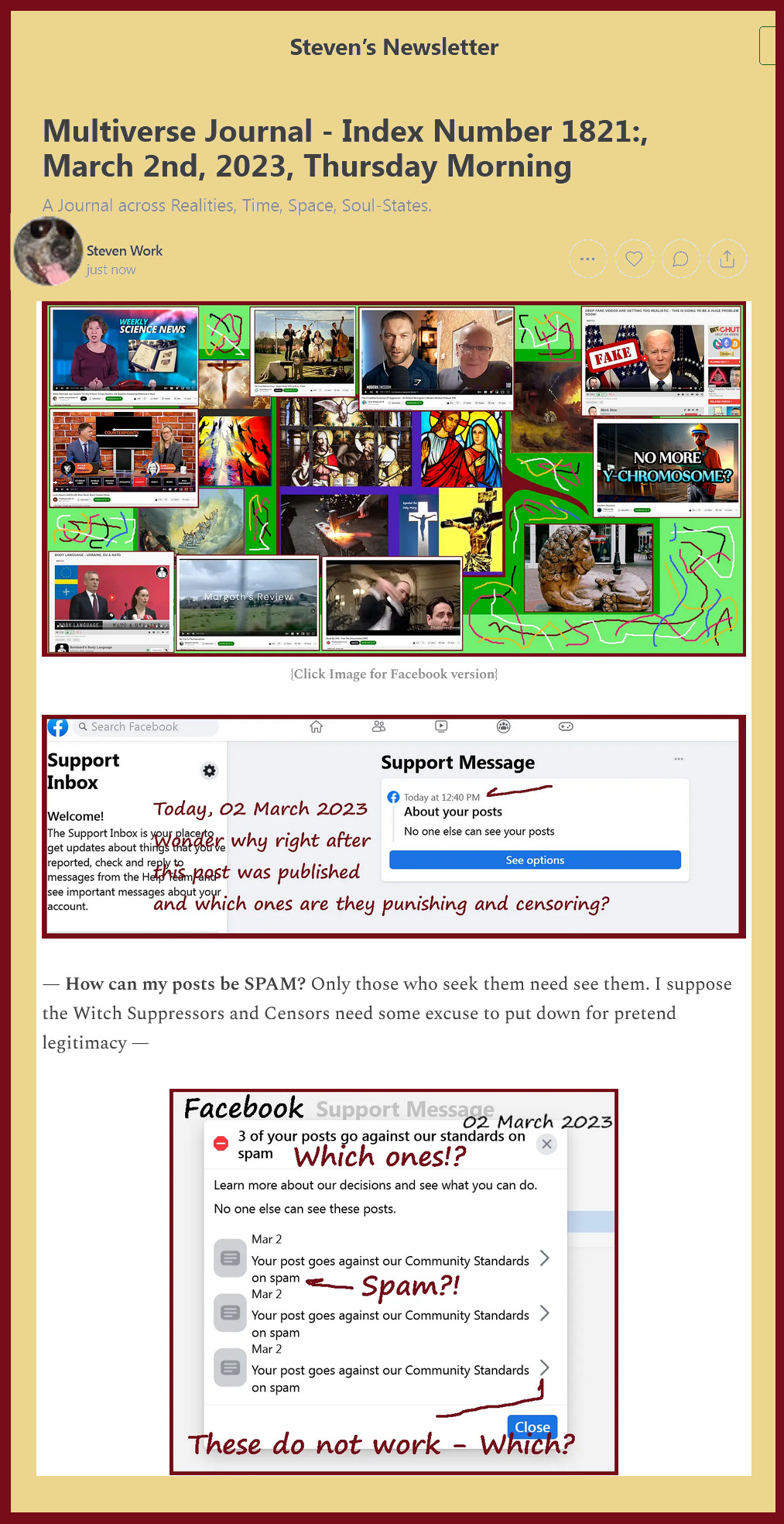 ( .. exclusive for SubStack because the Vagina-god Satanic Witch owners and directors of Facebook are Mind-Raping horrors that Hate us and want us suffering endlessly and Burning in Hell - They Lying, Censoring, manipulating and benefiting from our life-long and generational Suffering from lies and ignorance they Profit from. Mind-controlling slimy lying Hate-filled Female-Evil vile horrors that are a Curse on Life, Love, Joy, Peace, Liberty, Rationality, .. and our souls. — May these Profit us by helping see and consider some of what the Satanic minions of the Witch-Matriarchal ruling families want to hide from us.)