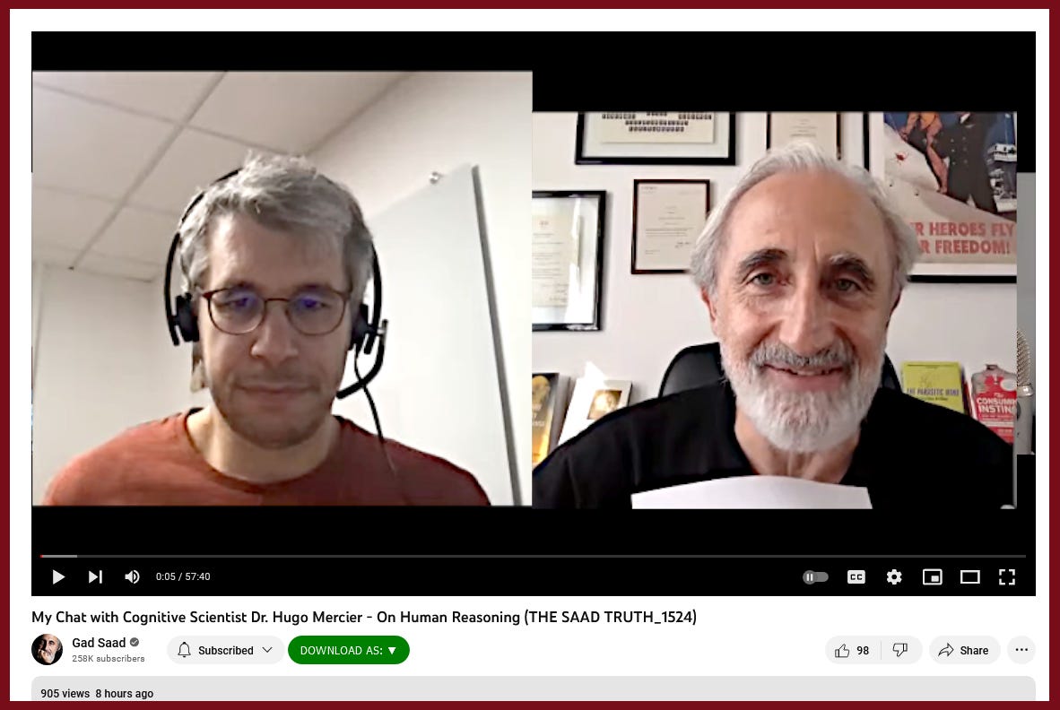 “My Chat with Cognitive Scientist Dr. Hugo Mercier - On Human Reasoning (THE SAAD TRUTH_1524)”