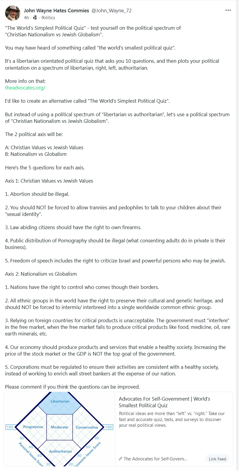 ( .. exclusive for SubStack because the Vagina-god Satanic Witch owners and directors of Facebook are Mind-Raping horrors that Hate us and want us suffering endlessly and Burning in Hell - They Lying, Censoring, manipulating and benefiting from our life-long and generational Suffering from lies and ignorance they Profit from. Mind-controlling slimy lying Hate-filled Female-Evil vile horrors that are a Curse on Life, Love, Joy, Peace, Liberty, Rationality, .. and our souls. — May these Profit us by helping see and consider some of what the Satanic minions of the Witch-Matriarchal ruling families want to hide from us.)