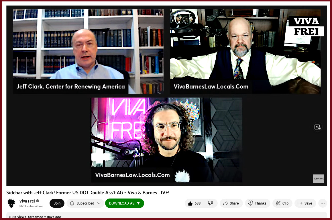 “Sidebar with Jeff Clark! Former US DOJ Double Ass't AG - Viva & Barnes LIVE!”