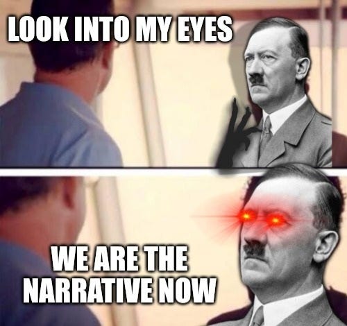 The 'Men are all powerful, women oppressed' is a common one, that any discussion of 'Jews' or coordinated anti-Rational anti-Western Values group is Bad, the Poison Forced-Injections were okay to force on people – even if it was sickening and killing people because VagFeelie Authority BlaBlaBla, even actual events like what happened on Jan 6th become a kind of Narrative that Tribalizes ..