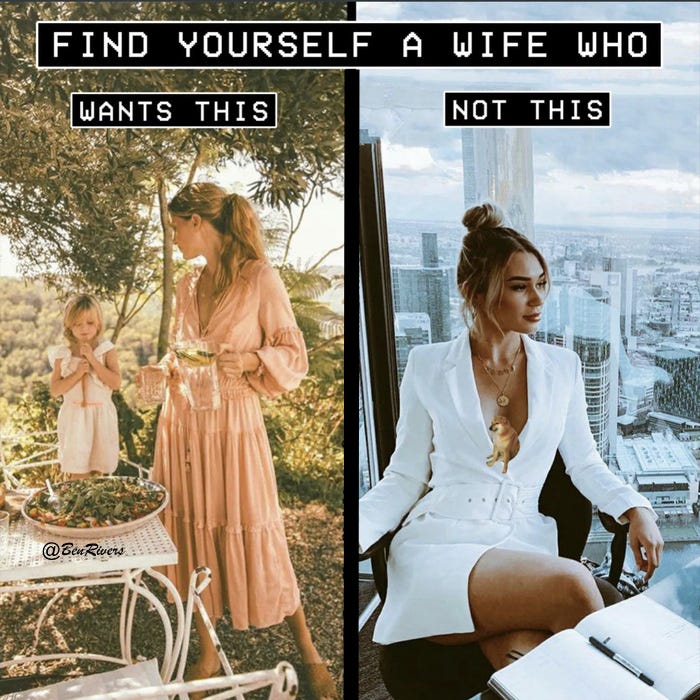I mention in the comment about another unTruth he Believes (and many do) and include a video and comment about how even in the West where social safety-nets and 'abundance' exist it is not true. That unlike in Afghanistan where entire families are starving, here families can not be started, and those that do the children are abused and neglected and it is destroying the society and value-systems that have made us a Merit and Virtue leader .. until .. well, until women were raised under lies and delusion and given power over policies outside home and gotten State into home and ...