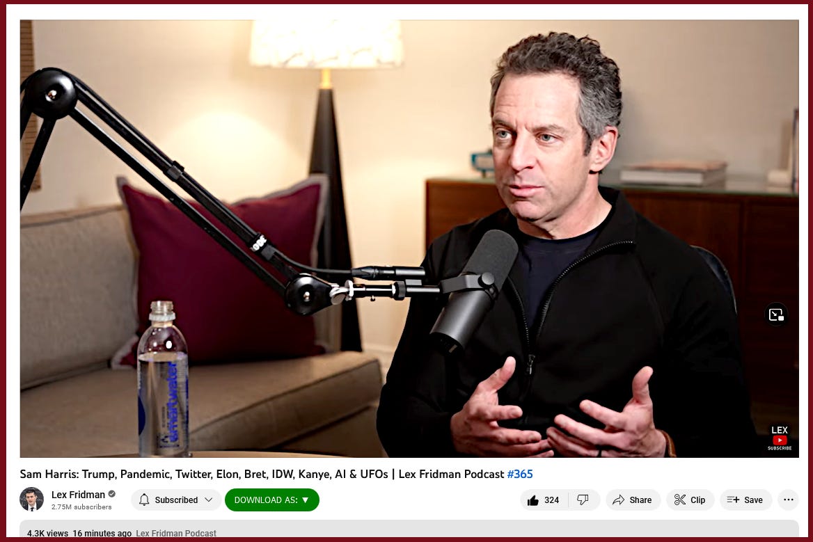 “Sam Harris: Trump, Pandemic, Twitter, Elon, Bret, IDW, Kanye, AI & UFOs | Lex Fridman Podcast #365”